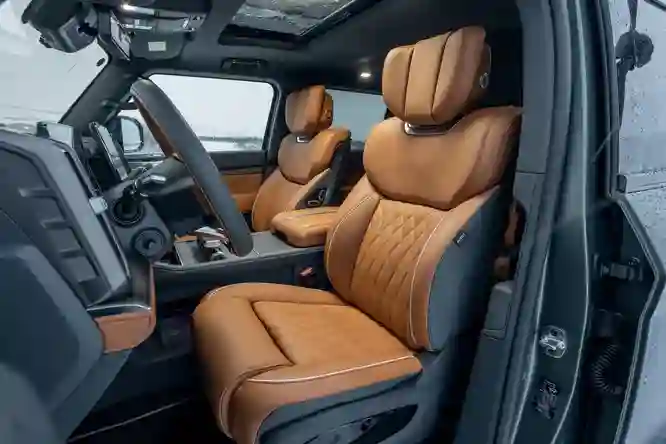 Габариты модели не менее внушительны: длина 5066 мм, ширина 2080 мм, высота 1934 мм. А вот багажник скромный, всего 452 л (для сравнения: у UAZ Hunter 470 л).
